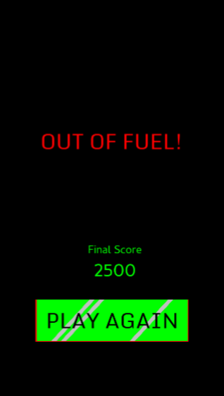For the user interface, there was thought given to both the placement of display information and the controls. The score was placed at the top of the screen during gameplay as that is an industry standard and is also where attention is drawn since drone cars spawn in that region. The fuel tank display is on the upper-right edge over the foliage where no cars might interfere with its view. Control using 'A' and 'D' keys for desktop play was chosen over the 'left' and 'right' keyboard arrows so that users can control movement with the left hand and recycle game play quickly using mouse clicks with the right hand. The 'A' and 'D' keys are commonly used for PC games, so this is also a familiar control for many potential users. When played on a mobile browser there are large half-screen sized 'left' and 'right' tap control zones.