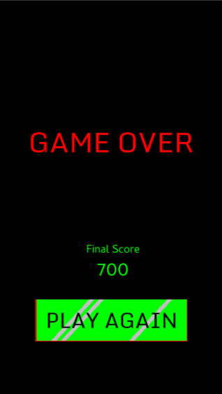 For the user interface, there was thought given to both the placement of display information and the controls. The score was placed at the top of the screen during gameplay as that is an industry standard and is also where attention is drawn since drone cars spawn in that region. The fuel tank display is on the upper-right edge over the foliage where no cars might interfere with its view. Control using 'A' and 'D' keys for desktop play was chosen over the 'left' and 'right' keyboard arrows so that users can control movement with the left hand and recycle game play quickly using mouse clicks with the right hand. The 'A' and 'D' keys are commonly used for PC games, so this is also a familiar control for many potential users. When played on a mobile browser there are large half-screen sized 'left' and 'right' tap control zones.